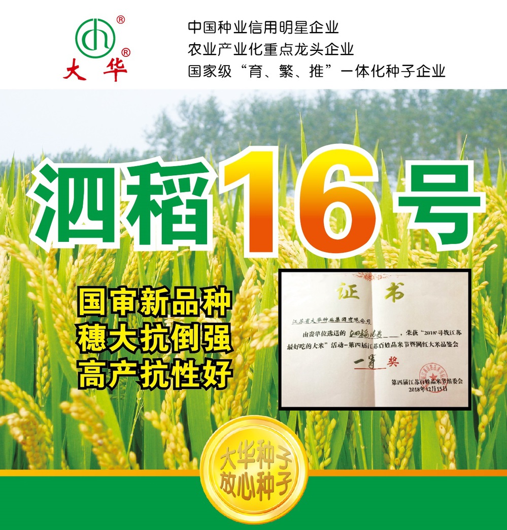 大華種業現階段主營常規稻麥種子,同時大力發展雜交玉米、雜交水稻種子經營。公司現有“大華牌”水稻種子、小麥種子、大麥種子3個“江蘇省名牌産品”,2012年“大華”商标被國家商标局認定爲“中國馳名商标”。當前,公司在營各類農作物品種40多個,其中,常規水稻主推華粳5号、華粳9号、連粳13、揚農香28、泗稻16、大華香糯、連糯1号等高産優質品種;小麥主推華麥5号、華麥8号、華麥1028、鎮麥168、鎮麥10号、揚麥29、揚輻麥10号、鄭麥1860等高産優質品種;玉米主推蘇玉34、大華1146、蘇玉糯602等品種。