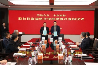 12月26日,蘇墾農發與宇宸面粉股權投資戰略合作框架協議簽約儀式在南京舉行。集團公司總經濟師、蘇墾農發黨委書記、董事長朱亞東和宇宸面粉董事長陸飛分别進行緻辭。集團公司黨委委員、蘇墾農發總裁丁濤主持簽約儀式。 朱亞東對宇宸面粉股東代表的到來表示熱烈歡迎。他指出,宇宸面粉深耕專用面粉領域,經營團隊精益求精,能夠在毛利率低、開工率低的大環境中實現穩健發展,值得敬佩。蘇墾農發全産業鏈一體化經營、全農服務、全程質量管控的“三全模式”與宇宸面粉高度契合、優勢互補,通過本次合作可以補齊面粉産業鏈,爲未來進一步延鏈補鏈奠定基礎。他強調,收購宇宸面粉是蘇墾農發貫徹落實江蘇農墾集團“一核雙擎”戰略部署,得到集團公司主要領導關心與支持,是雙方基于戰略互補、産業協同、共同發展的深度考量。期待雙方共同圍繞戰略目标,打造面粉産業高質量發展的典範。 陸飛向蘇墾農發對宇宸面粉的肯定及信任表示感謝。他指出,江蘇農墾有悠久曆史和優良傳統,蘇墾農發是農業行業優秀上市公司,宇宸面粉對合作秉持積極擁抱的心态。他強調,經營團隊将清晰界定身份角色,完成從股東、董事向職業經理人身份的轉變,未來與蘇墾農發共同鍛造團結一緻